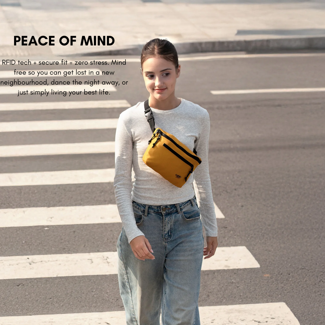 CabinZero Stinger Hip Pack 3L | Sustainable Recycled Crossbody Shoulder Bag | RFID Blocking & Water-Resistant | Fits iPad Mini | Travel Essential - Buy Now!