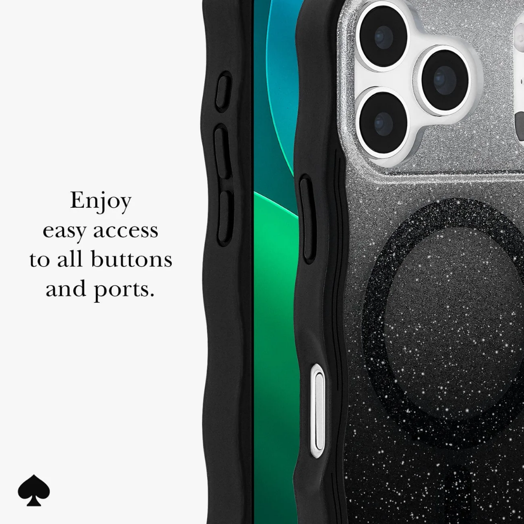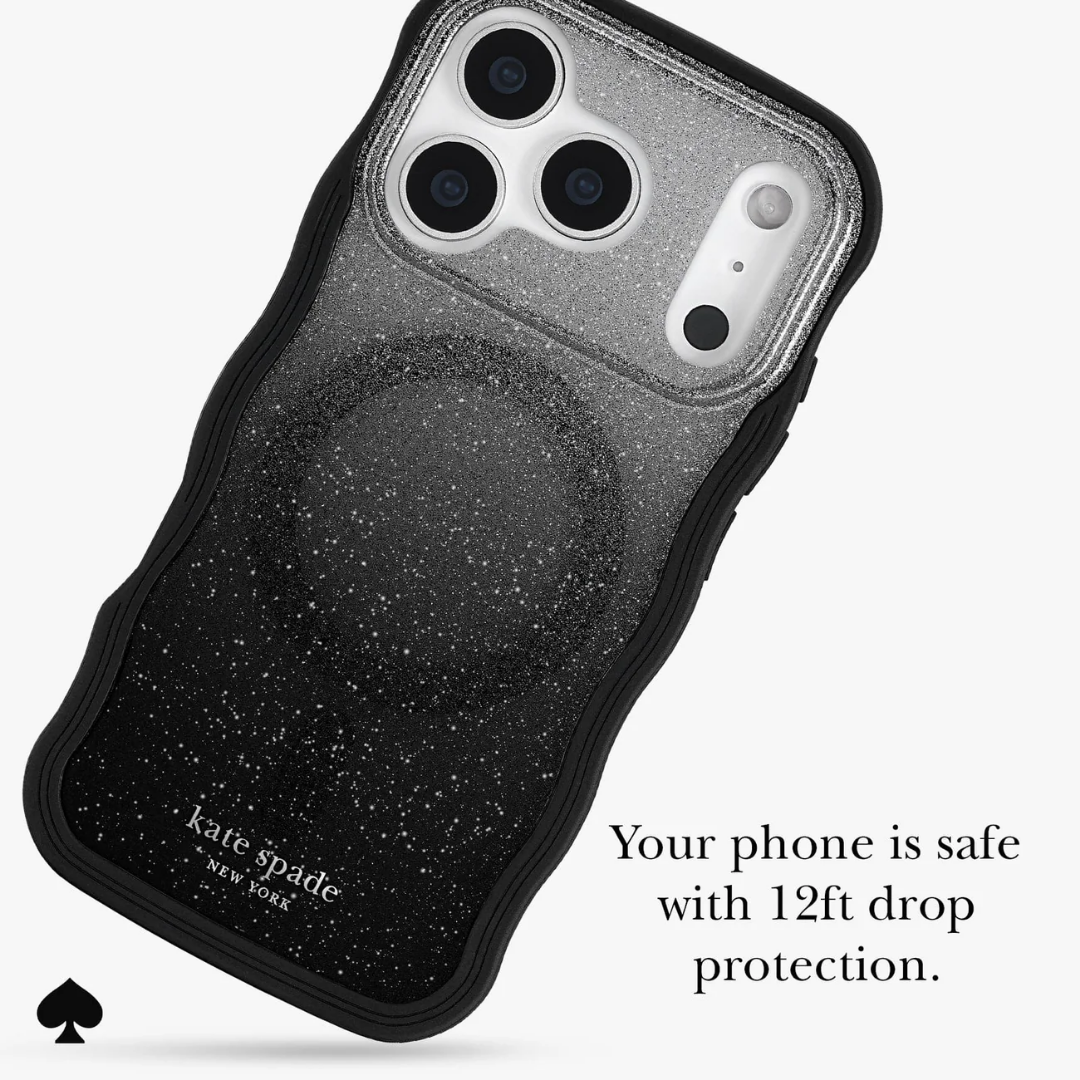 Kate Spade New York Wavy Nightfall MagSafe iPhone 17 Case – Glitter Ombré, 12ft Drop, MagSafe Compatible