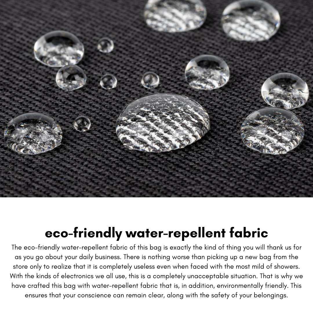 ✅ A: The fabric is water-resistant, and the zippers are waterproof, offering protection from rain and spills.