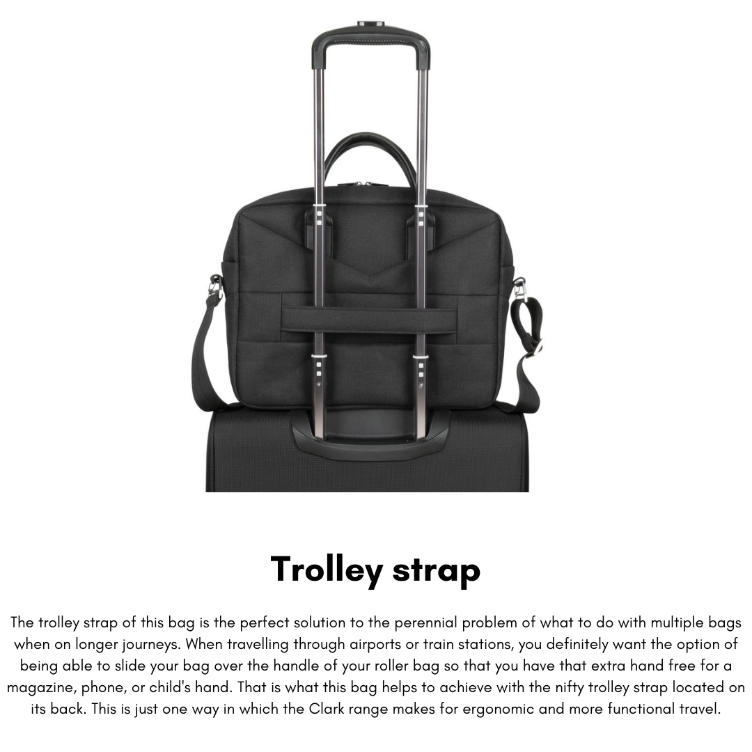 Includes a luggage strap to secure your bag to any rolling suitcase and PU leather handles for comfortable carrying on long trips. -