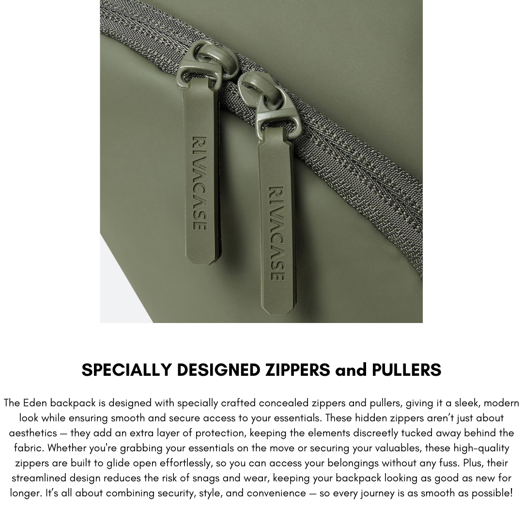 Elevate your everyday commute or travel with the Rivacase Eden 7856 ECO Urban Backpack in Olive Green. Designed with style and sustainability in mind, this 20L backpack is made from high-quality waterproof RPET PU leather, crafted using 12 recycled plastic bottles—a bold step toward reducing plastic waste.