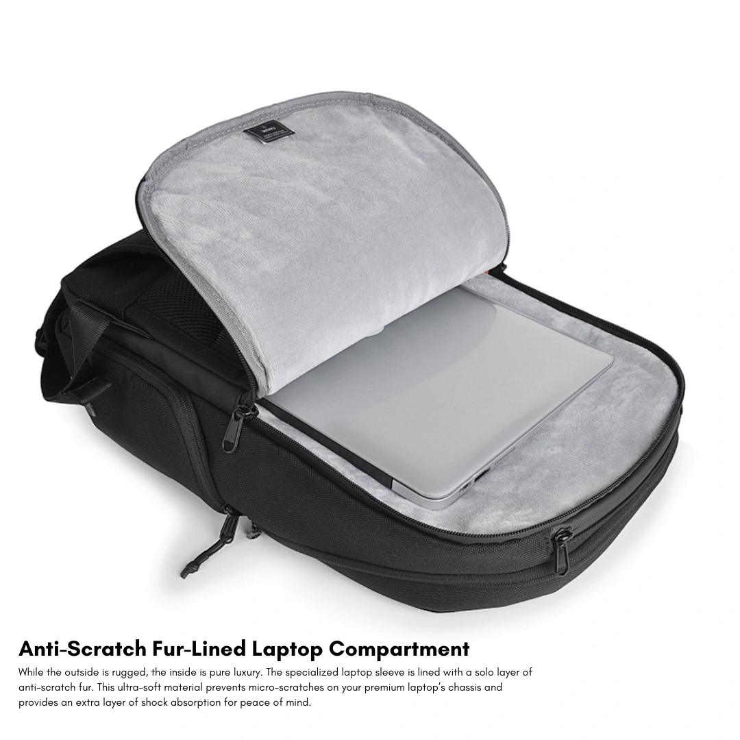 💻 Solo-Layer Anti-Scratch Laptop Vault Most bags use basic foam; the Warriors X Pro features a specialized Anti-Scratch Fur Lining. This ultra-soft, high-density layer cradles your 15.6-inch laptop, preventing micro-abrasions and absorbing shocks that would typically crack a screen.