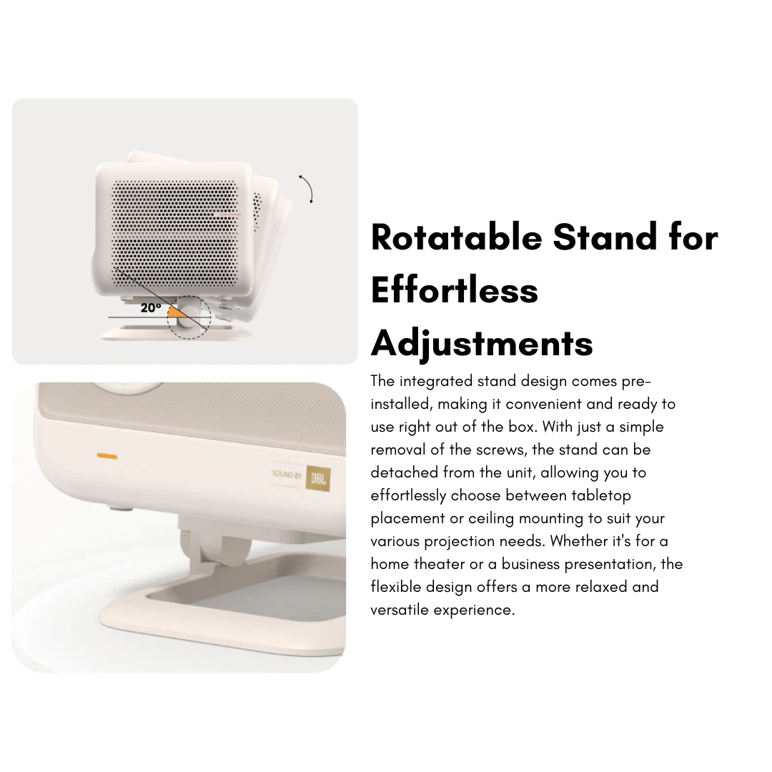 Rotatable Stand: The built-in stand allows for effortless adjustment of the projection angle.