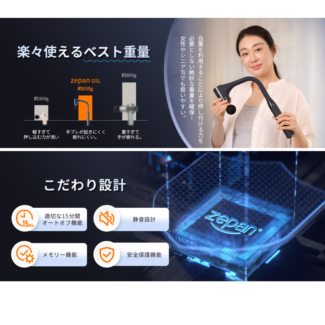 Designed by the Japanese brand for maximum user comfort and effectiveness, the Zepan-G5L is the only cordless myofascial release gun you'll need for full-body recovery.
